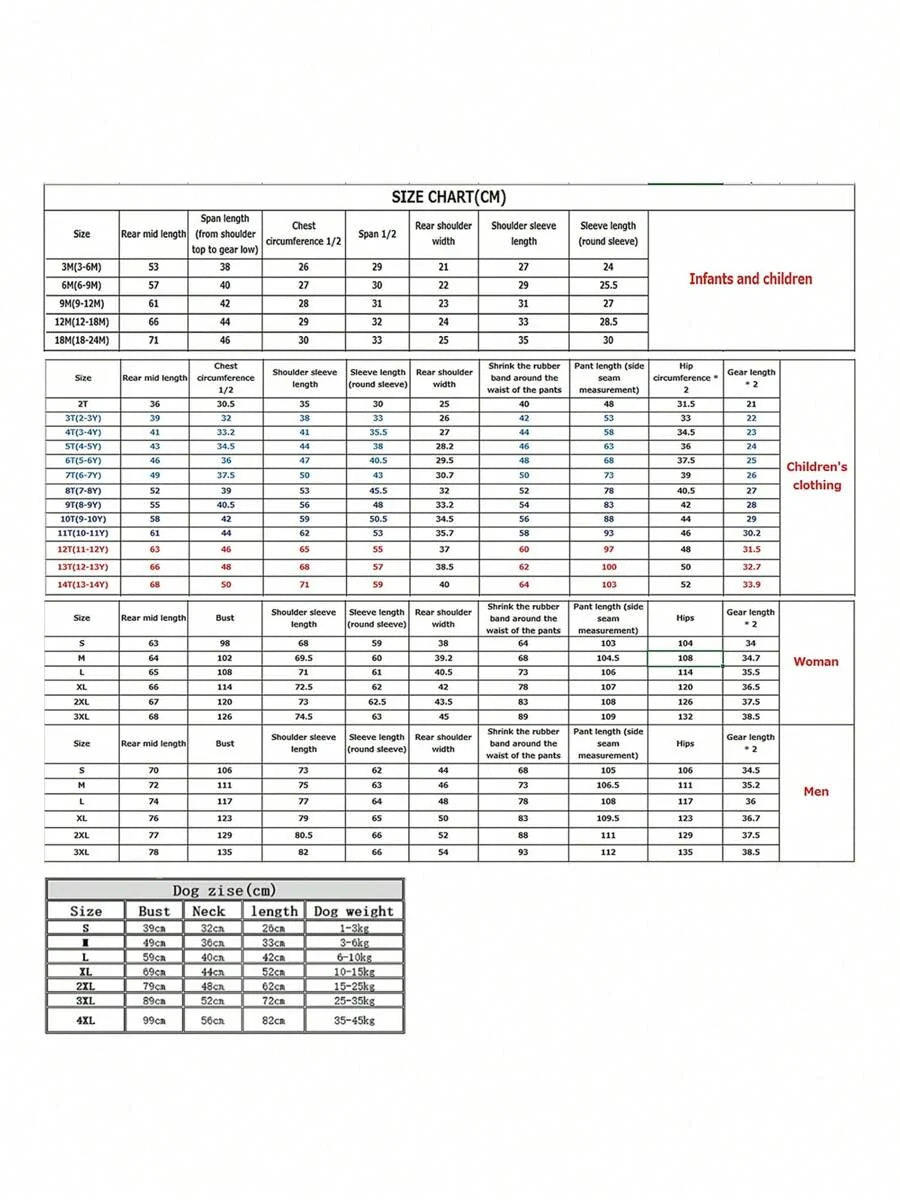 Note: Check the size guide to ensure the perfect fit for your family.