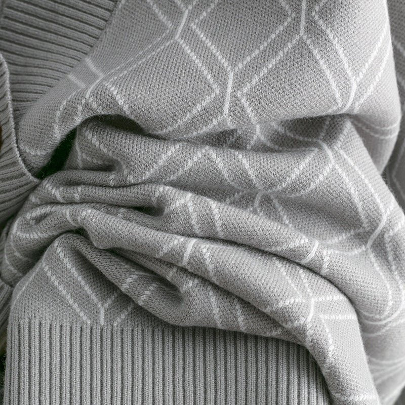 Loose Diamond Pattern V-Neck Cardigan