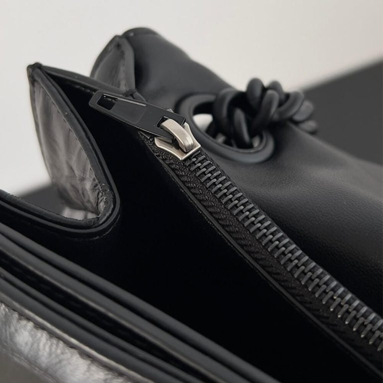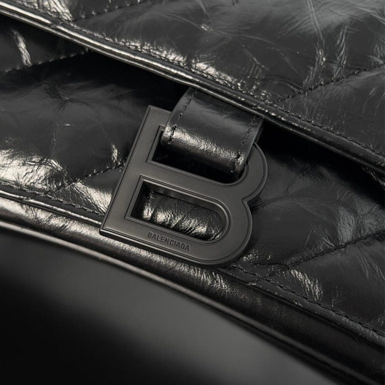 Bag Type: Crush Chain Bag Large in black quilted crushed calfskin with black matte hardware