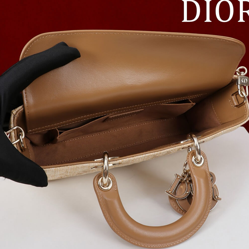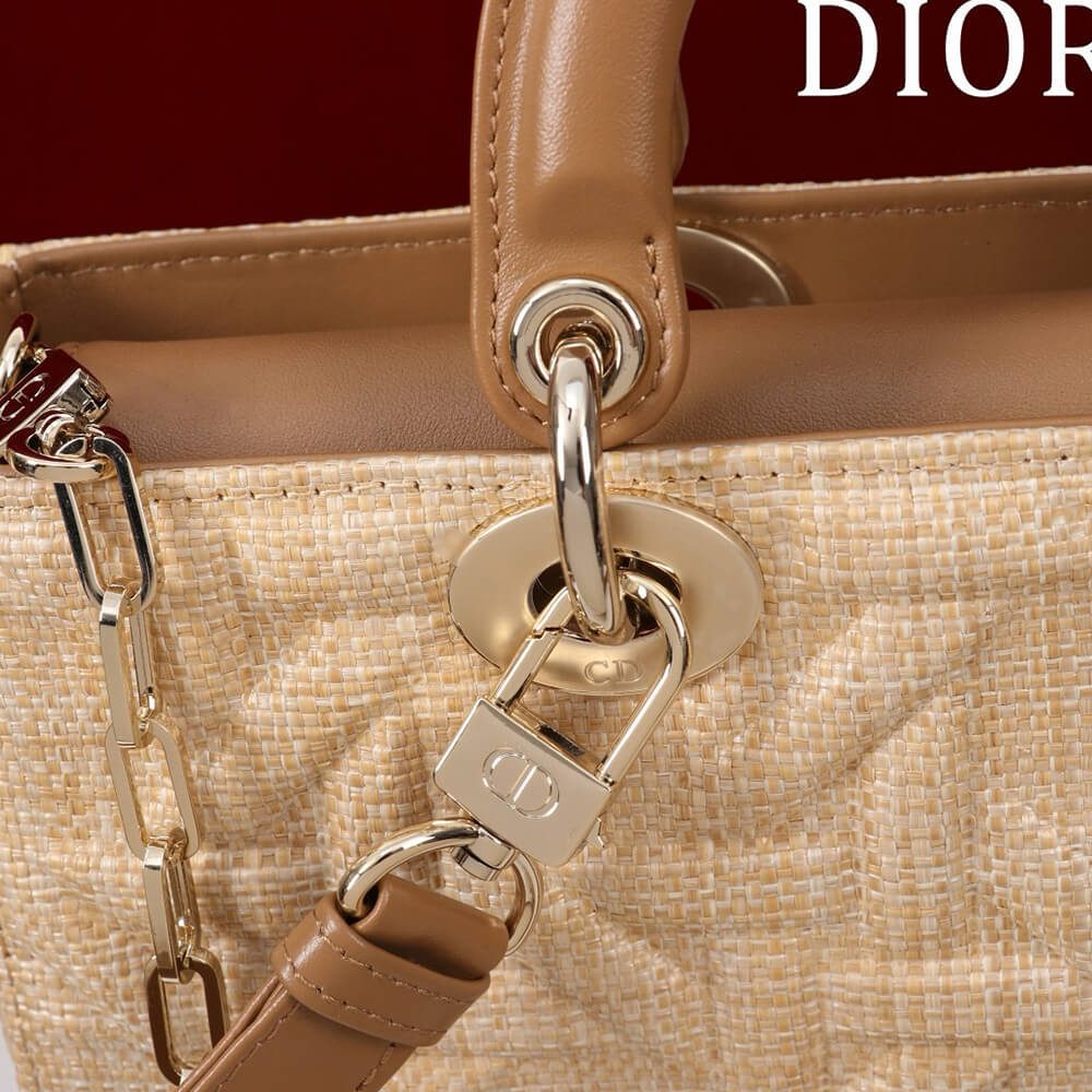 Model: Medium Lady D-Joy Bag Beige Graphic Cannage Raffia